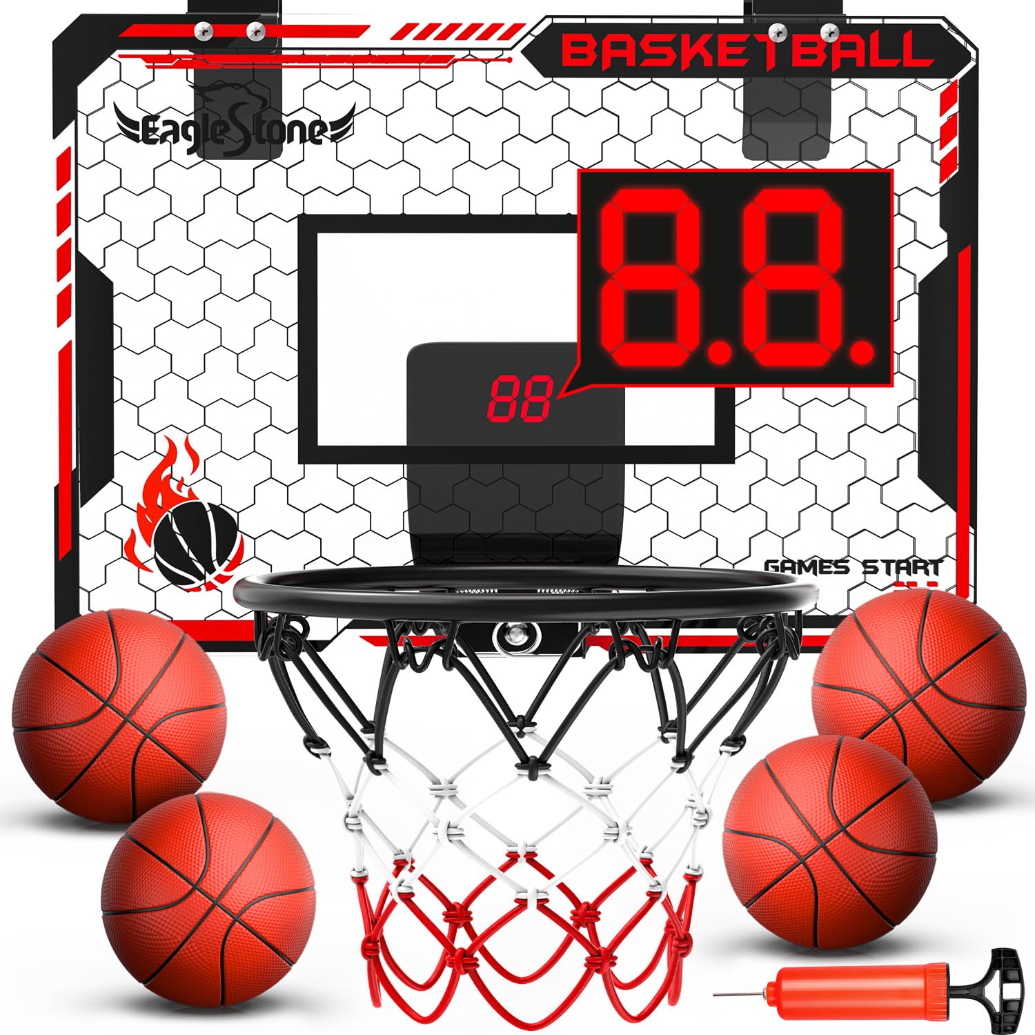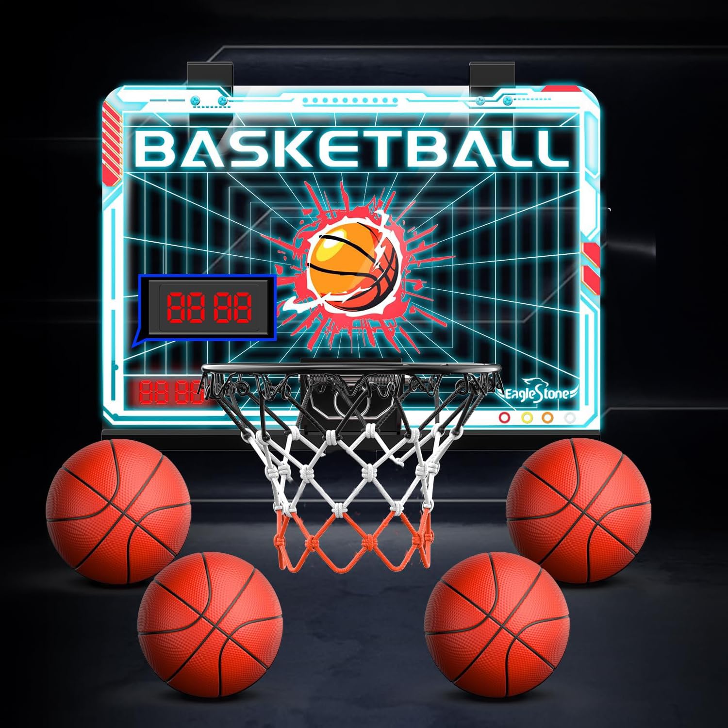 Buy it NowEagleStone Kids Mini Basketball Hoop Set, Over The Door Basketball Hoop with Electronic Scoreboard, 4 Balls, Wall Mounted Room Basketball Hoops for Kids Boys Birthday