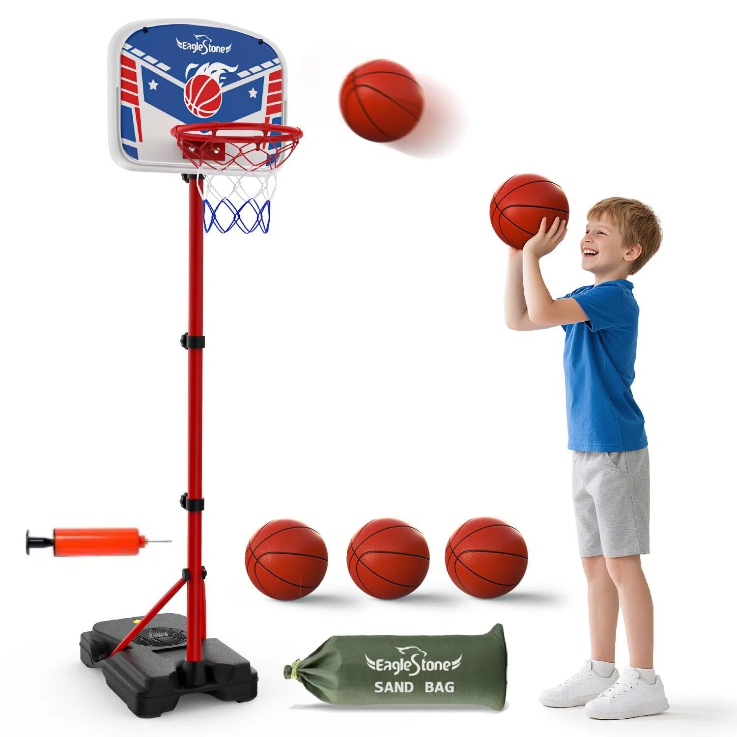 Buy it NowEagleStone Kids Basketball Hoop with Stand, Adjustable Height Basketball Set Toddler Toys for Boys and Girls Age 3-12, Indoor Outdoor Backyard Sport Game Gift with Sandbag for Stability
