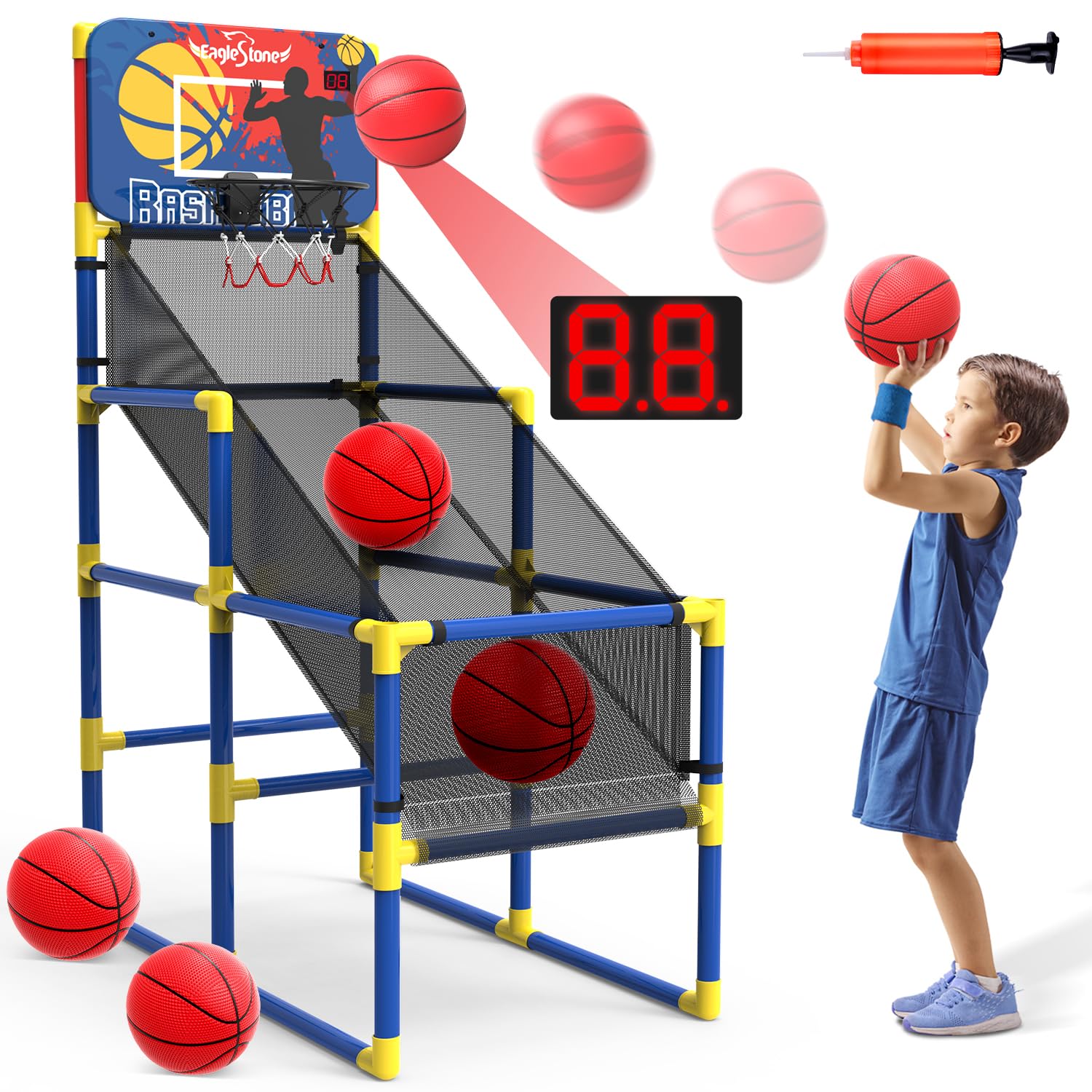 Buy it NowEagleStone Kids Indoor Basketball Hoop with Electronic Scoreboard, 4 Balls